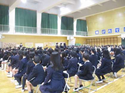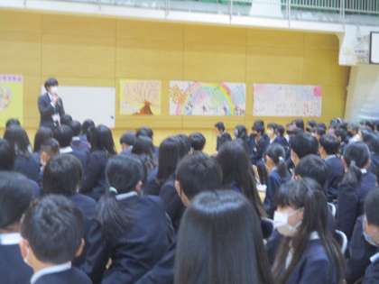 予行に参加してくれた5年生に対して、卒業生の代表の人と6年の担任の先生から、感謝と激励の言葉がおくられました。