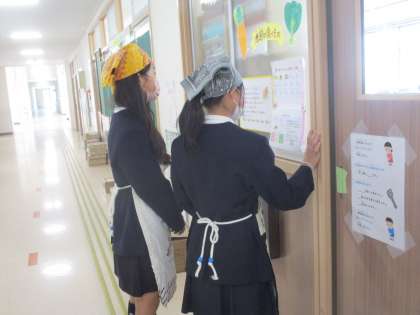 給食の献立についての放送をする6年生です。入念に、何度も練習しています。