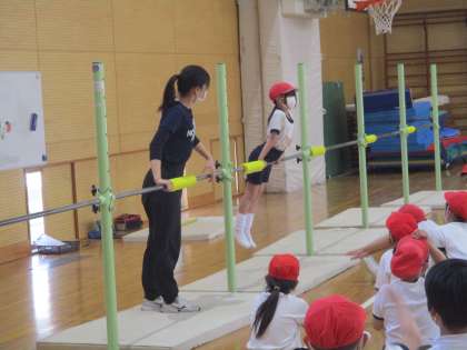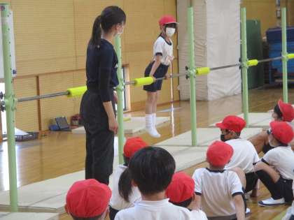 次は、鉄棒で体を支持する「つばめ」という技です。
