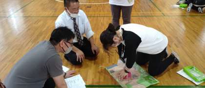 人形やあっぱくんを使って胸骨圧迫の練習をします