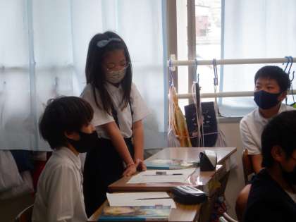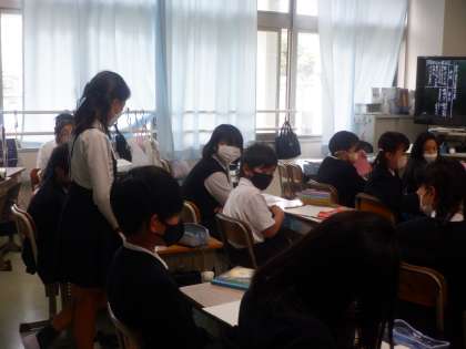 仲間の感想を聞いて気づいたことや感じたことを発表しています。