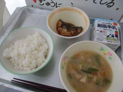☆5月8日の給食☆ 公開日 2023/05/08 更新日 2023/05/08 食育・給食 <5月8日(月)の献立> ☆ごはん ☆牛乳 ☆春野菜のみそ汁 ☆さばのしょうが煮 GW明けの久しぶりの給食は、春野菜がたっぷり入ったお味噌汁と調理員さんが丁寧に作ってくれたさばのしょうが煮でした。 さばは給食場の大きな釜でじっくりと炊きます。味がしみ込むよう調理員さんがこまめにさばに煮汁をかけています。ごはんにもよく合う献立です。