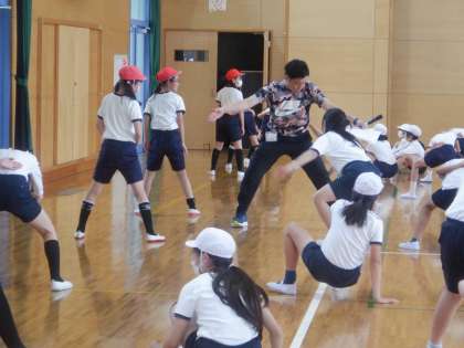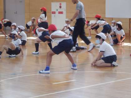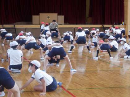 こちら5年生はおなじみのソーランです。構えの姿勢を確かめているところです。