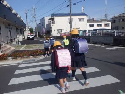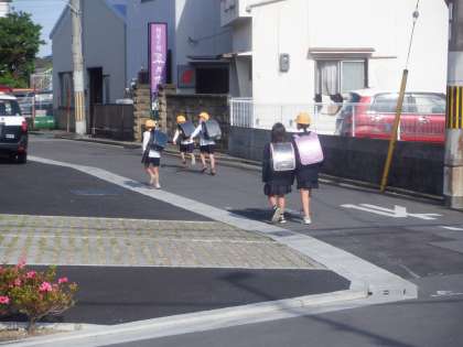 今朝の登校の様子です。風もやみ、いい天気になりました。