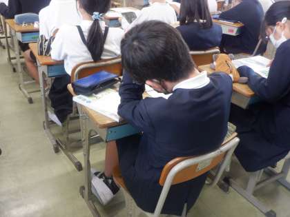 ノートでこれまでの学習をふりかえって、考えをまとめようとしている人もいます。