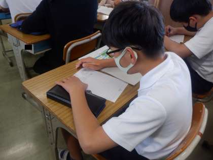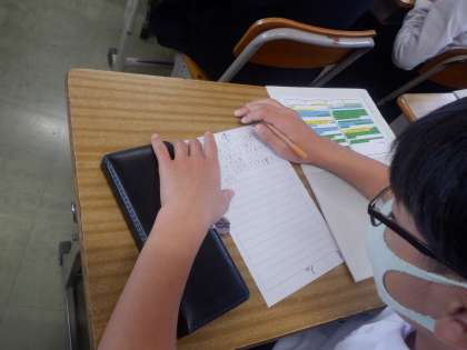 1段落分の考えを表したところで筆が止まりました。ここが勝負所です。がんばっています。