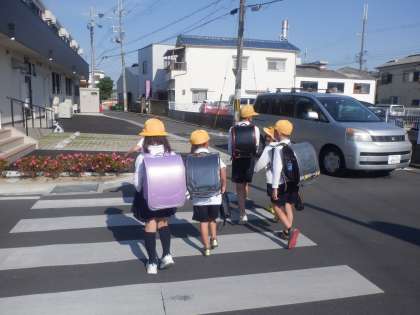 今朝の登校の様子です。今日もいい天気になりました。