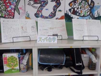 教室の後ろ側に、自主学習ノートのコーナーがありました。
