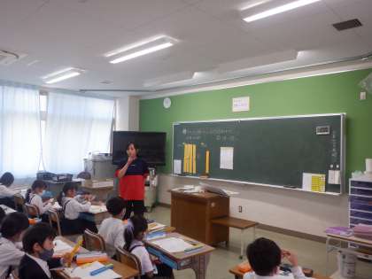 2年算数の学習です。ブロックの操作や図に表すことと、数の処理としての計算の仕方を結び付けようとしています。