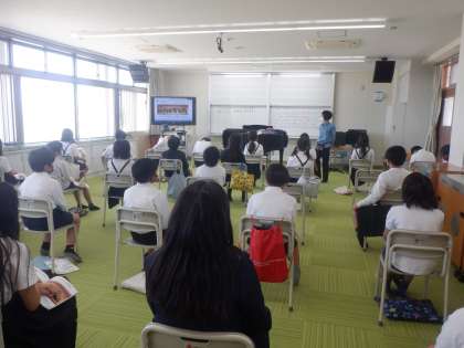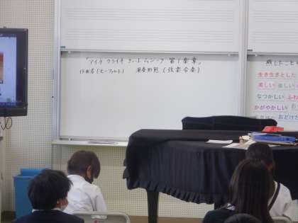 5年音楽の学習です。モーツァルトの「アイネクライネナハトムジーク」を鑑賞しています。おそらく多くの人が一度は聞いたことがあると思われる有名な曲です。