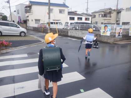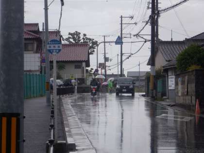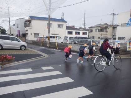 今朝の登校の様子です。急に雨が降ってきて驚いた人も多かったと思います。