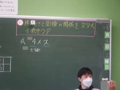 横の長さであるXに伴って変わっていく面積も、別の文字で表す必要があることに気づきました。