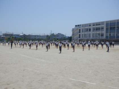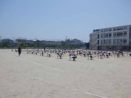 6年の団体演技の練習の様子です。