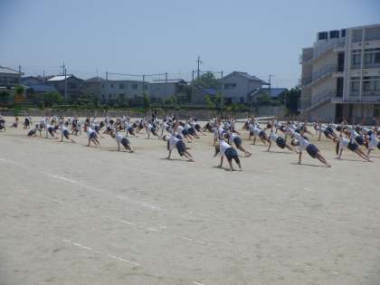 前半のダンスに続いての、「組体操」の部分です。最初は1人技からです。