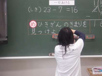 23−7=16というひき算の式を見て気づいたことをノートにまとめています。