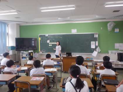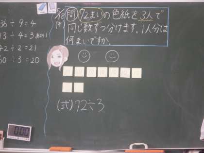 4年算数の学習の様子です。少人数学習で、クラスの半分は別の教室にいます。