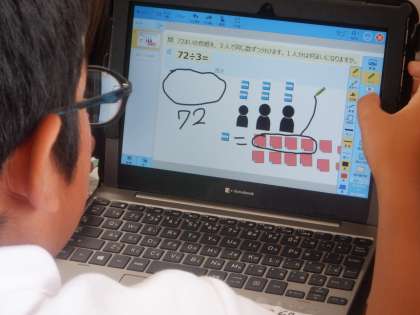 画面上で「色紙」を操作しながら、答えを求めているところです。
