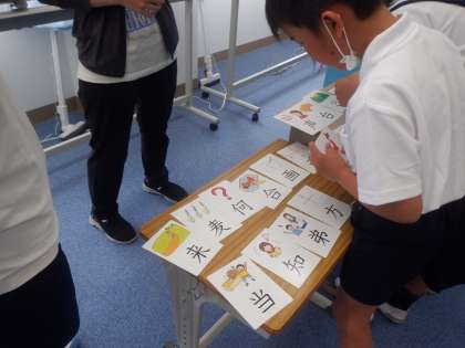 太陽学級の学習の様子です。カードを使って漢字を学習しています。
