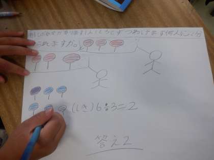 この人は、3つずつ分ける「÷3」の場面を描いています。