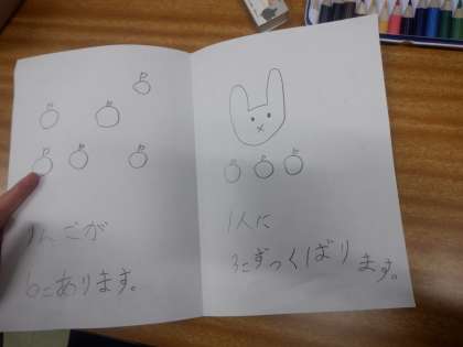 この人も「1人に3こずつ」の場面です。かわいい絵本ができそうです。