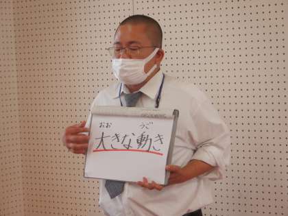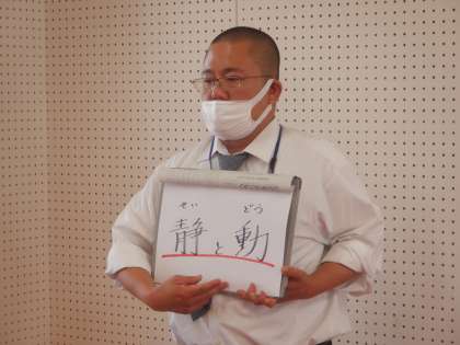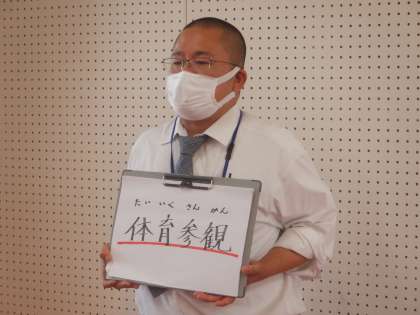 生徒指導の先生からは、体育参観の団体演技について話がありました。体育参観の練習も仕上げの段階に入るので、動きの大きさやメリハリを意識して練習しましょう。
