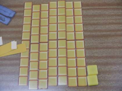 72−65の「72」をブロックで並べました。