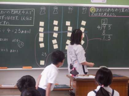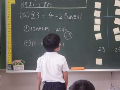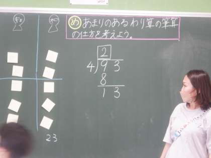 黒板でも、操作したことが、計算の経過のどこにあたるのかを確かめながら、学習を進めました。
