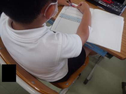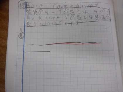 ノートのマス目を使って、12cmと4cmのリボンを図に表しています。