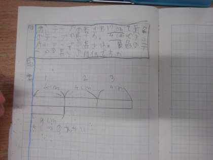 この人も、長いテープは短いテープの「3つ分」であることをはっきりノートに書き表しました。