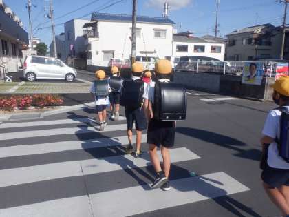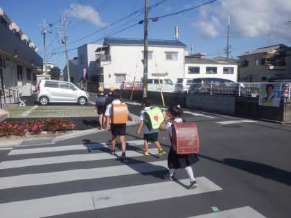 今朝の登校の様子です。いい天気になりました。気持ちのいい風も吹いています。