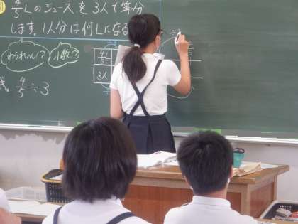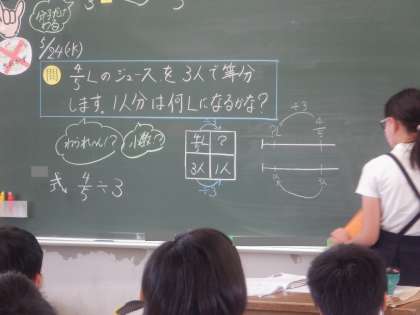 線分図での数量関係の把握も黒板で行いました。ていねいに学習を進めています。