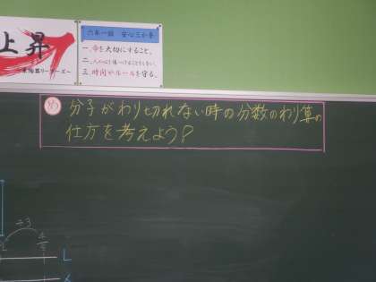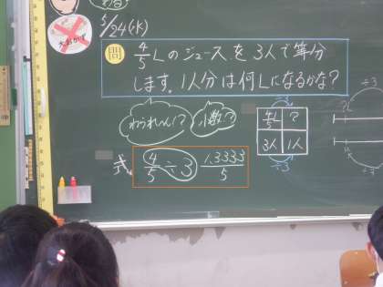 前の時間にわかった、「分子を人数でわる」やり方では、あまりが出てしまいます。こういう場合の計算の仕方について考えます。