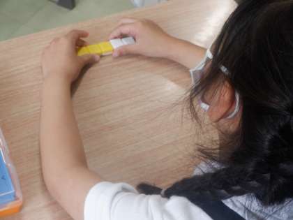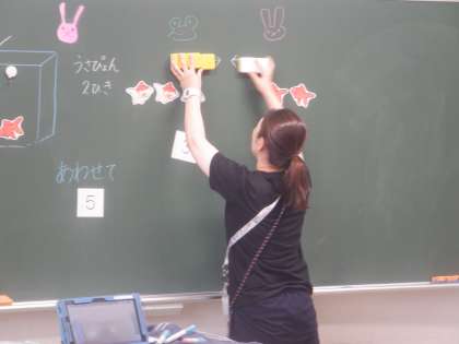 合わせて・・という言葉のとおり、3つのブロックと2つのブロックをつなげました。いくつになるでしょうか。