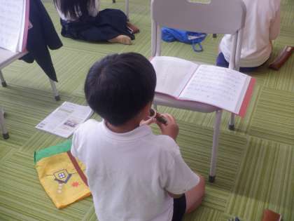 4年音楽の学習です。ディズニーの「小さな世界」を演奏しています。