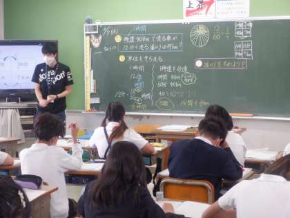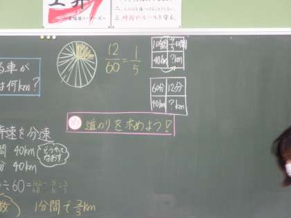6年算数の学習です。分数の考えを使って道のりを求める問題に取り組んでいます。