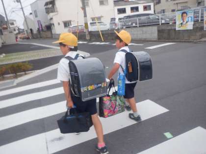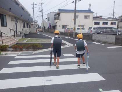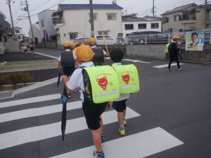 今朝の登校の様子です。このところ、朝は曇りが多いですね。