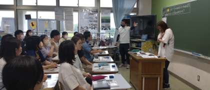 研究授業にむけて先生方も勉強です!模擬授業を行って指導力向上に努めます
