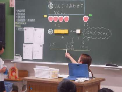 黒板でも、図と式との関係を、みんなで確かめていました。