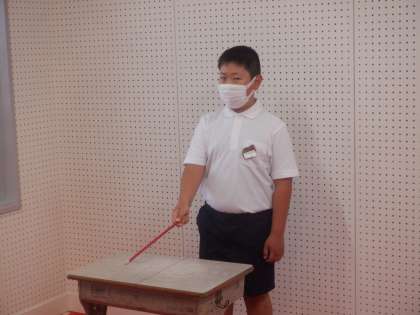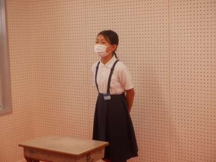 テレビ朝礼の様子です。児童会の人たちが進行します。