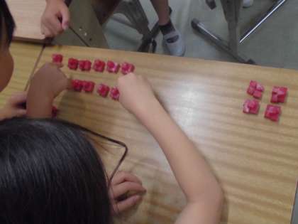 このグループは、5個ずつ並べています。1つのまとまりが5個であることがよくわかります。