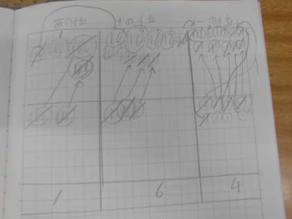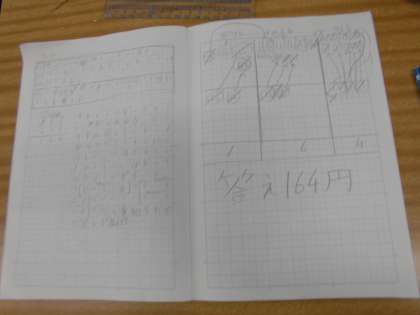 ひっ算なので、位ごとにどんな計算をするのか、お金の図を使ってていねいに書き表しています。