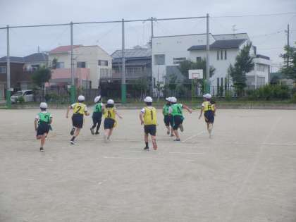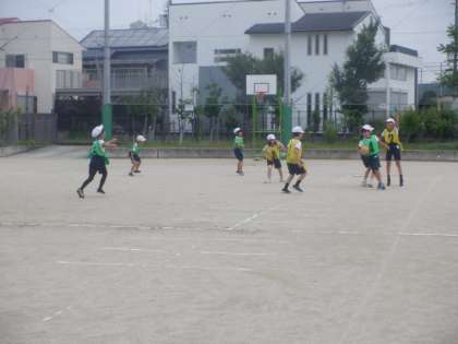 (下の写真)黄色チームはゴール寸前で相手のタグを取り、攻撃を止めることができました。
