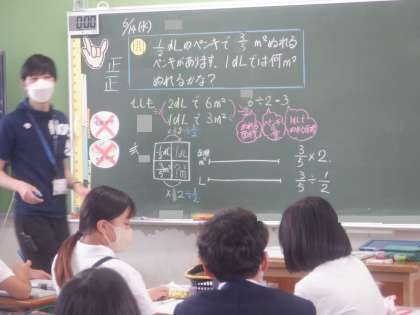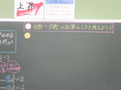 式は(5分の3)÷(2分の1)となることがわかりました。分数÷分数の計算の仕方を考えていきます。