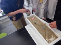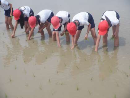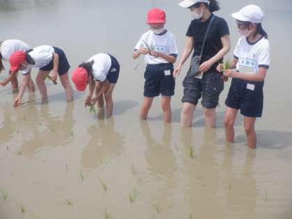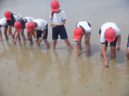 持っている苗の束から、4本ぐらいをとって植えていきます。