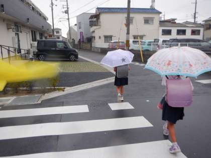 雨が降ってきました。傘をさしての登校です。下校時も安全に気を付けて歩いてください。
