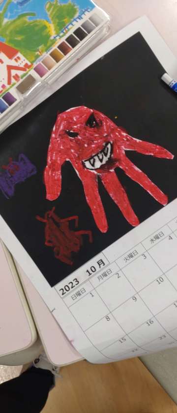 みんなで集まってカレンダーを作ります ハロウィンのおばけです
