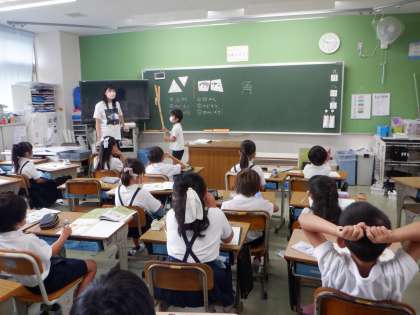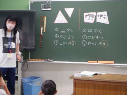 2年算数の学習です。身の回りでもよく見かける図形について学習しています。