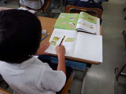 さんかく(三角形)としかく(四角形)を見分けて、分類しています。