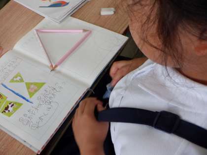 三角形は、三本の直線で囲まれた図形だということをイメージしているようです。