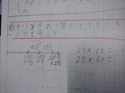 1本の数直線に数を表し、関係をとらえて、式を立てている人もいました。